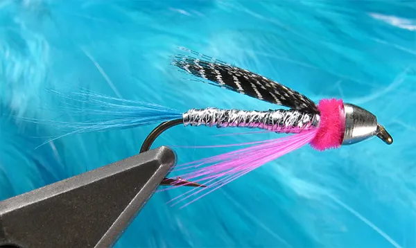 Blue is generally an acceptable color for backgrounds for fly pictures - even in the form of a neck as here. But the blue details - as on this particular fly - will have a tendency to blend in with the background.