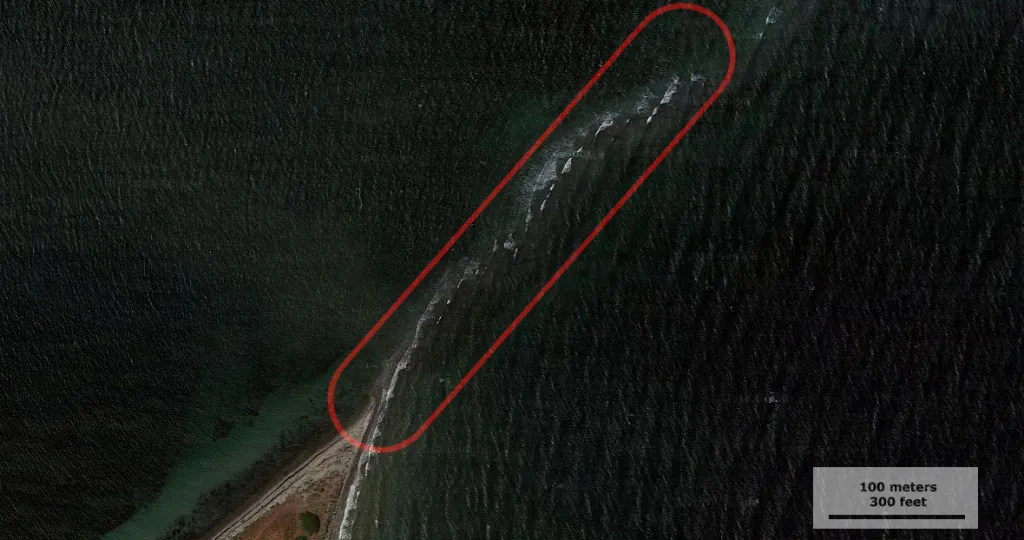 A reef like this one will be obvious from the beach - especially in rough weather where the waves will break over the rocks