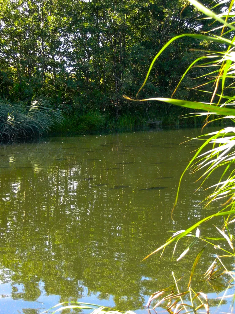 The shadows over the bottom are large bream in the Great Vejle Stream