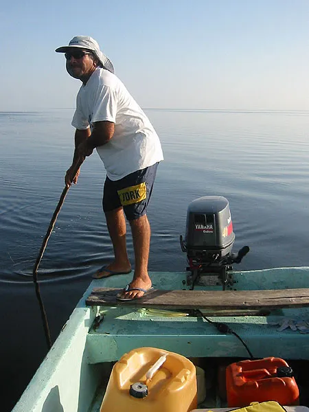 Carlos poling in the calm water after a thunder shower in the mangrove.