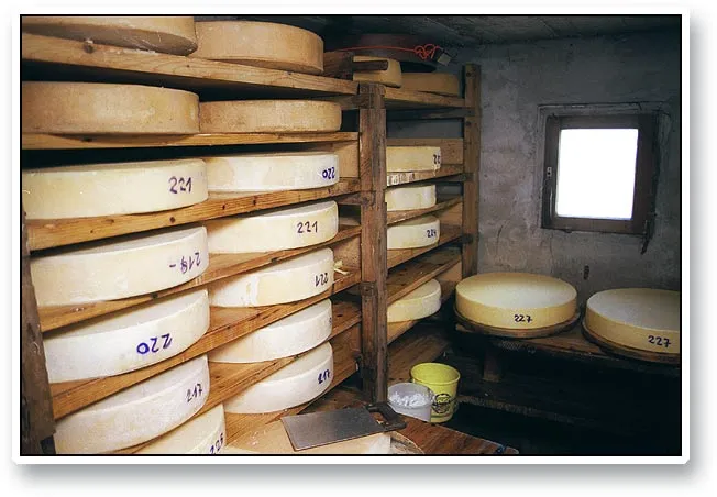 The cheeses rest and mature in the small Käserei in the Krimmler Valley.