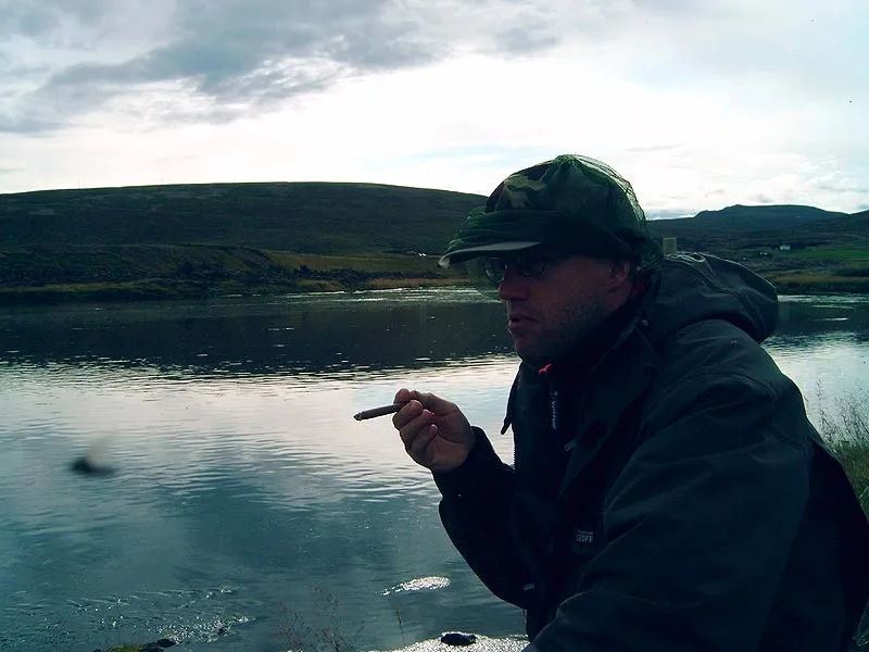Celebrating with a cigar on the bank of Litlá.