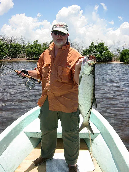 Claus with his first tarpon. An estimated 6 lbs. or 3 kilos fish.