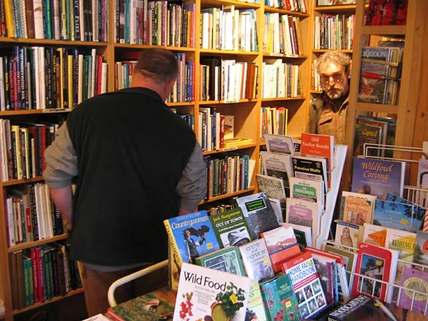 Paul Morgan hiding (right) while we browse his book shelves filled with great litterature.