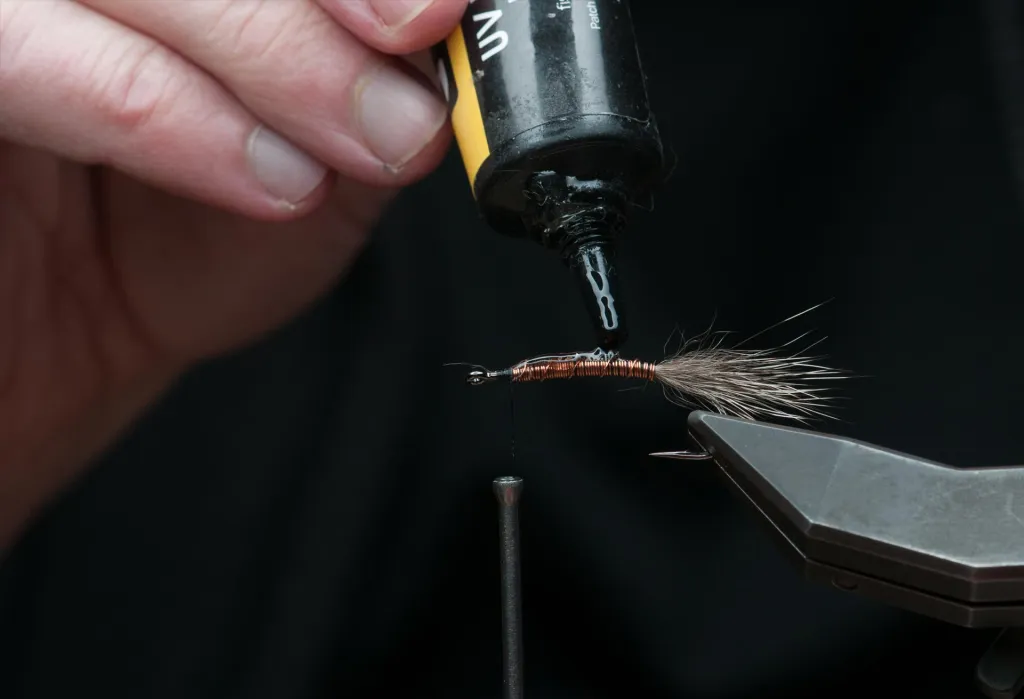 Add a thin layer of LCR over the copper wire. Rotate the vise to distribute it evenly