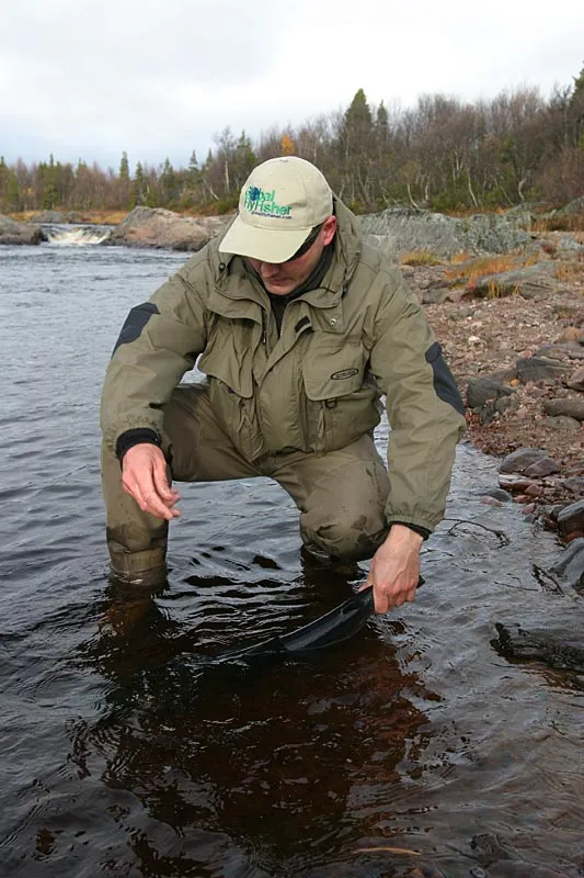 Leon releasing a salmon