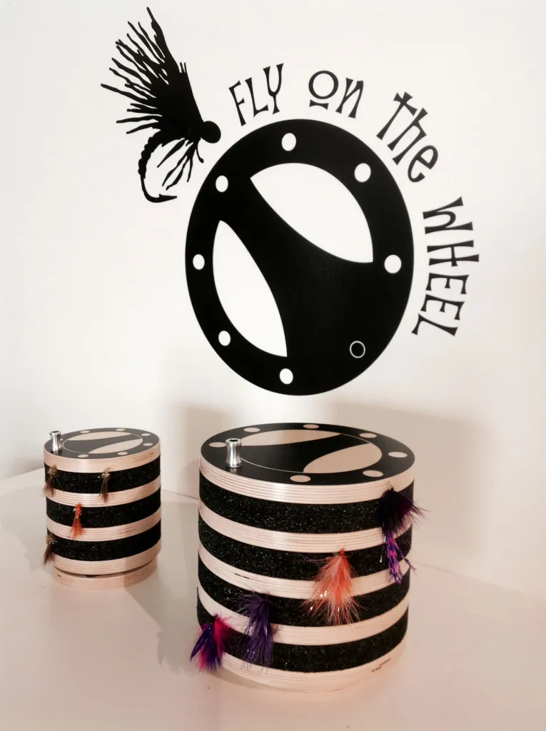 A custom logo - and in this case even a fly reel handle - can be added to the fly wheel