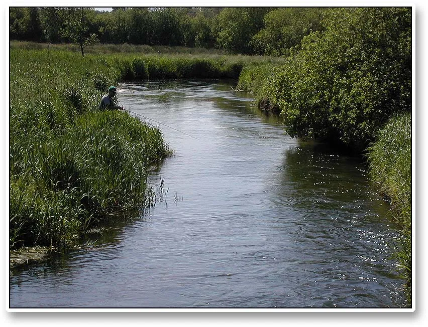 A typical Danish stream meanders through the landscape. It is narrow, fairly peaty, deep and usually not wadable.