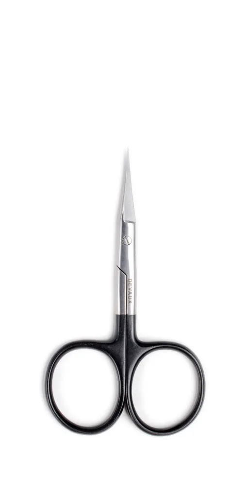 These are very fine tipped scissors with one serrated blade, well suited for precision work on small flies