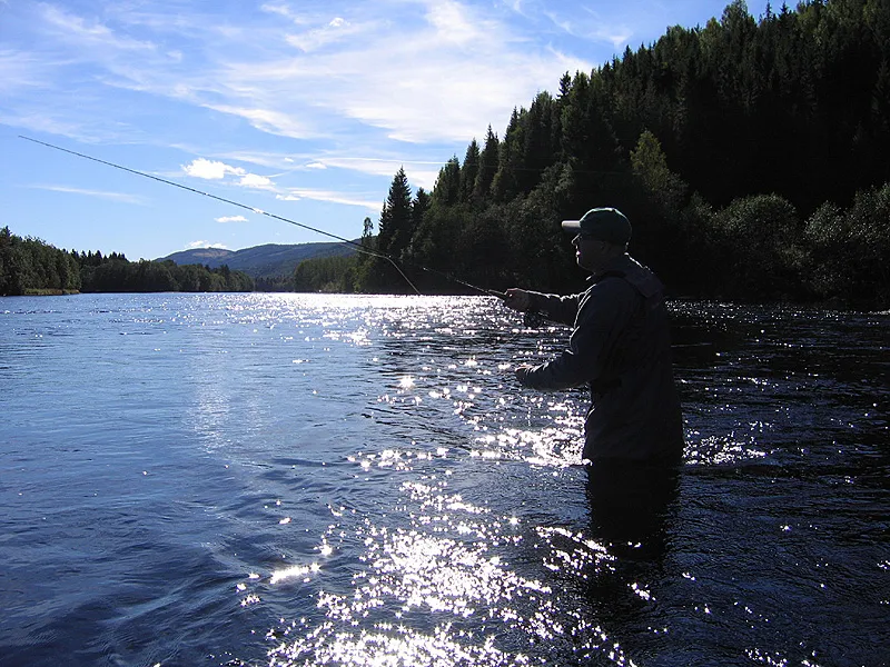 Shooting against the sun and with lots of water in the picture will always pose a problem. Underesposure may mean lost dark areas, but saves the picture anyway. Had the forest and the angler been well lit, the water and sky would have been ruined.
