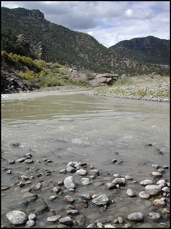 A major turndown: the Arkansas all mudded up. Surprisingly enough a drive a few miles downstream took us to completely clear water.