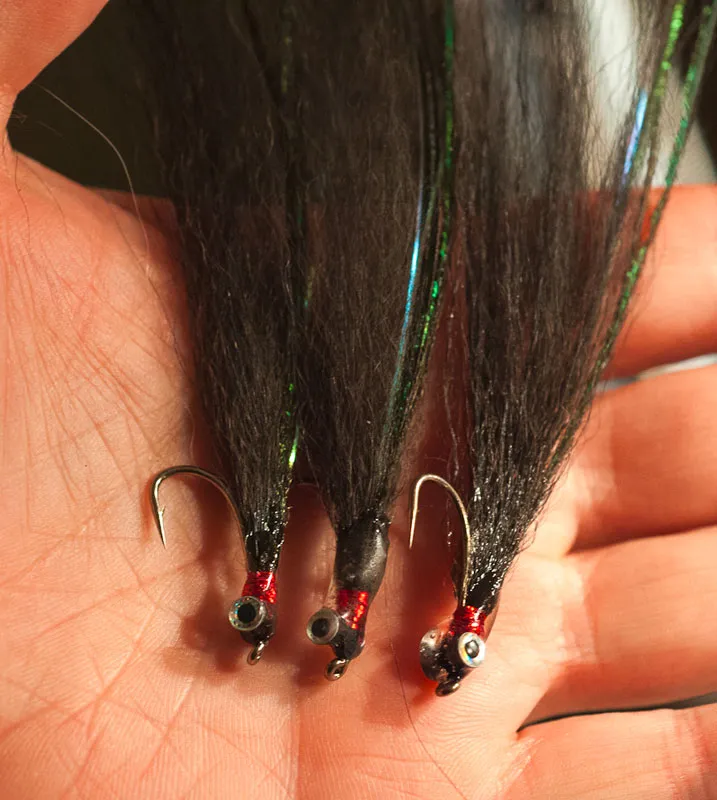 The LCR's offer themselves very well to experiments with epoxy-types of flies like these baitfsh imitations tied from my dog Divus' hair. It's not the first time he has sacrificed fur for my flies...