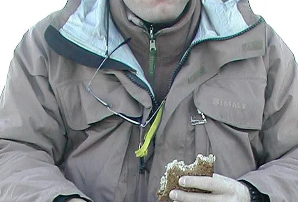 Simms' jackets have a near perfect color: a very uniform dull greenish hue, which is very descrete. Jacket by US Simms.