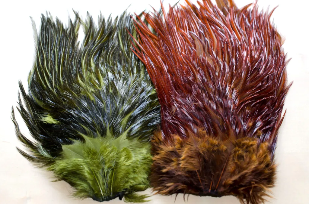 These are inexpensive Chinese saddles that have been washed and steamed after purchase, and can deliver a lot of good hackle for a low price.