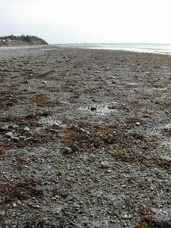 The tide is rarely this low, and usually this very dry spot holds fish. The typical tide in Denmark is from a few inches to a foot or so.