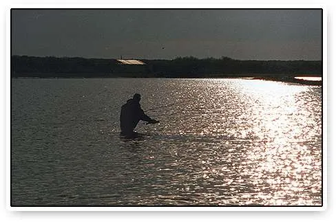 Catching and releasing a fish in the sunset over Lake Oostvoorne