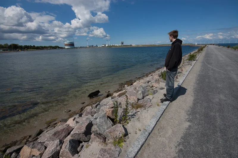 Most of Divus' contact with water is just ankle deep, here on a local pier in Copenhagen