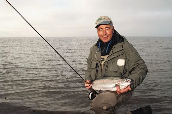 Henning with another one of the escaped rainbows, which again have populated the Danish coasts. They're great fun to catch, but still a menace and an all too common form of fauna pollution.