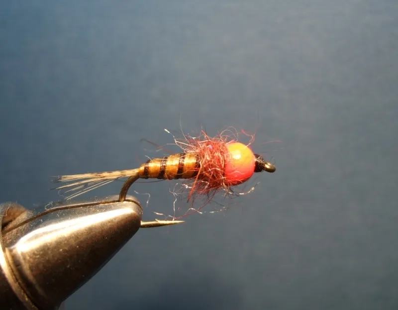 Fig 3: Getting down fast with this fluoro tungsten nymph (Efly, Luxembourg)