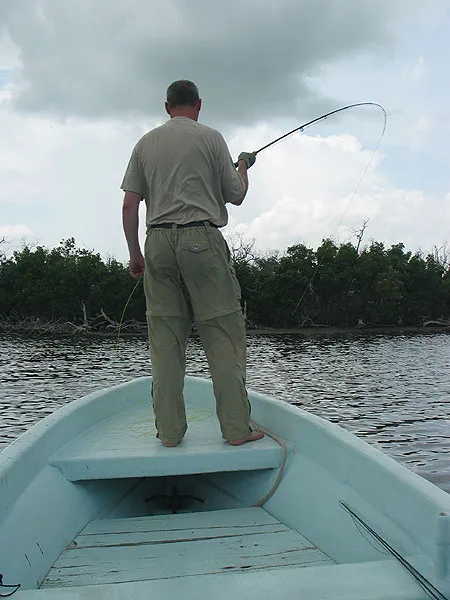 Fighting a small tarpon