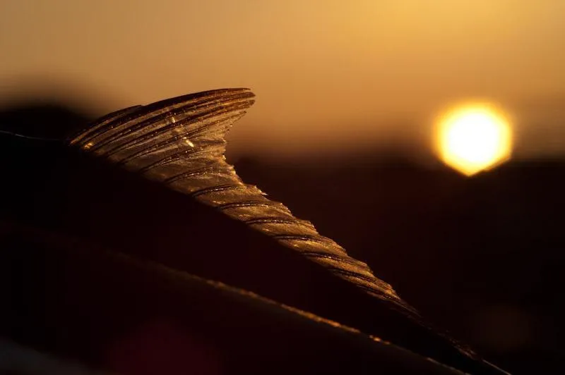 Almost abstract but still quite obvious - fin in one side, sun in the other, light in the top, dark in the bottom