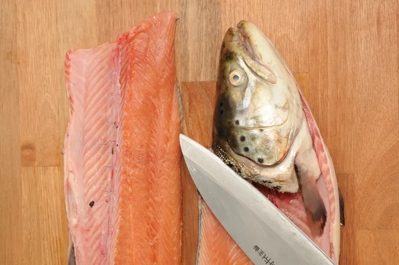 Oncle you have the front part free, you can cut alle the way to the tail, again as close to the bones in the spine as you can come, and finally you have a separated filet