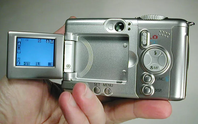 The Canon PowerShot A80 features a really nice flip-out LCD monitor. The camera is feature laden and does an extremely good job of macros.