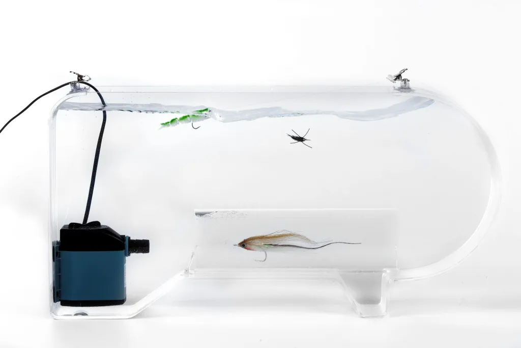 A transparent tank with a current