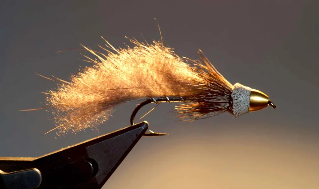The Full Metal Jacket Nutria Muddler tied with a traditional and commonly available brass cone cone.