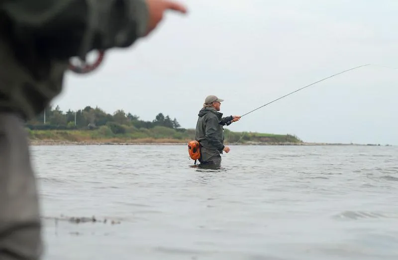 The angler poking into the foreground tells us in no uncertain terms that the angler in the center isn't alone, but without taking any attention away from the main subject