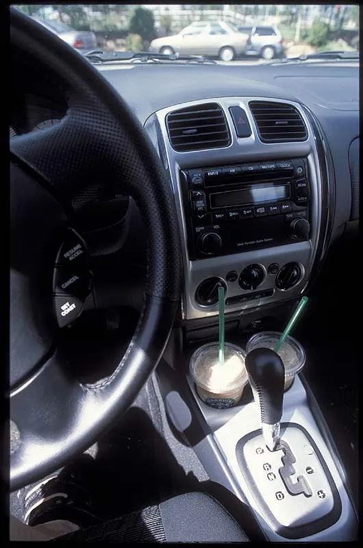 An excellent combination: our rental Mazda with a great automatic transmission and many other nice features combined with Starbuck's Frappuchinos from Estes Park.