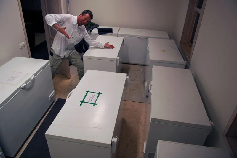 Nils presenting the freezers for the fish caught and killed on West Rangá. Thy more than illusrate how productive the Rangá's are.