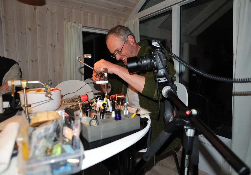 It takes lots of photo gear and tying gear to tie and shoot for GFF