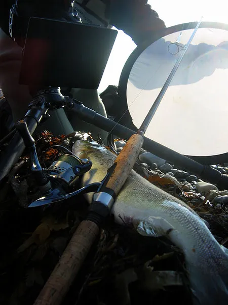 For real glossy magazine cover quality images you have to bring quite a lot of gear. Kristian who sets up for this image not only has a huge tripod for his large Nikon, but also screens to soften the light, a set of bellows to shade the lens and a large flash with a soft box. This is not what I'd recommend to the average photographing angler. Kristian is a pro and much more a photographer than an angler.