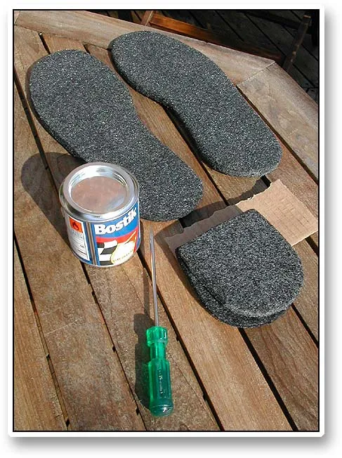 You need a generous amount of glue. This small tin only barely managed the soles.