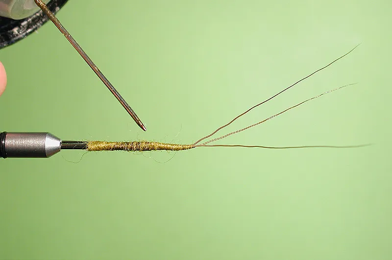 When the body is done you add some Flexament or a similar flexible glue to secure it. When it is still wet you slip the whole construction off the tool; you can then shape it and let it dry.