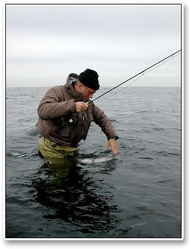 Ken trying to grab a fish by its tail to gain control over it.