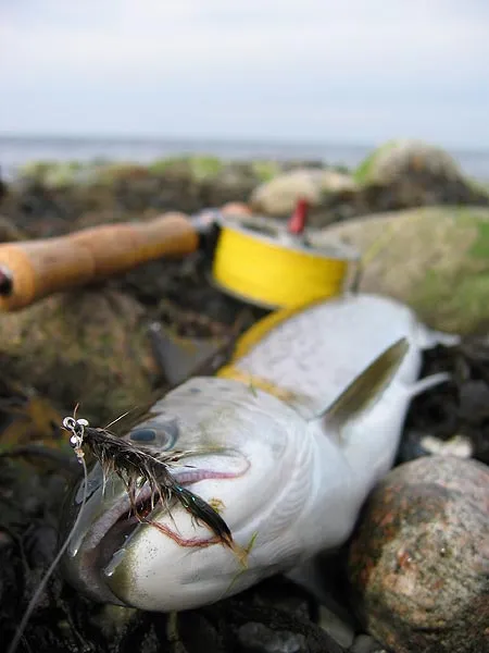 The Grey Frede where it rightfully belongs: in the jaws of a fish. This particular day it brought four fish to hand and enticed one more to bite, which managed to escape.
