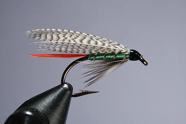 The wing on this fly is just a bit too long. The fly is commonly tied as a trout bucktail using gray squirrel tail for the wing, and is also used as a salmon fly tied on an upwing iron.