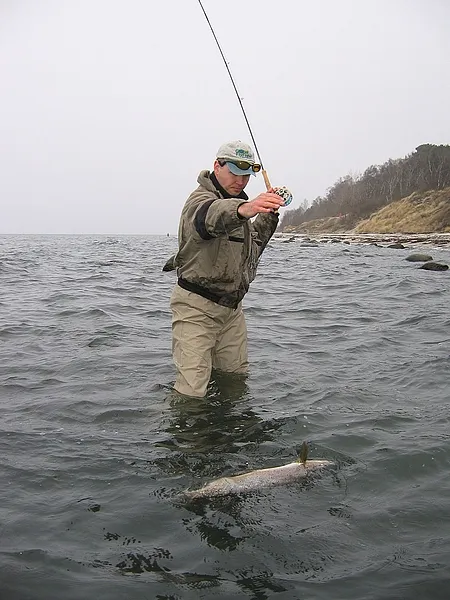 When the fish is tired - which can be rather quickly with kelts - it tips over like most trout, and can be landed and released in situ with no use of nets or other aides.