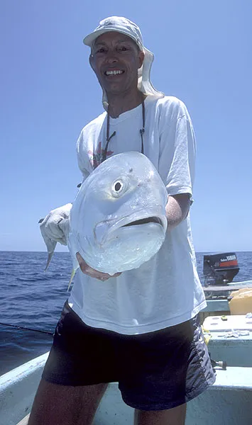 This 10-15 lbs. jack is about to become "cumida" - food - and wind up in the bottom of the boat for later consumption.