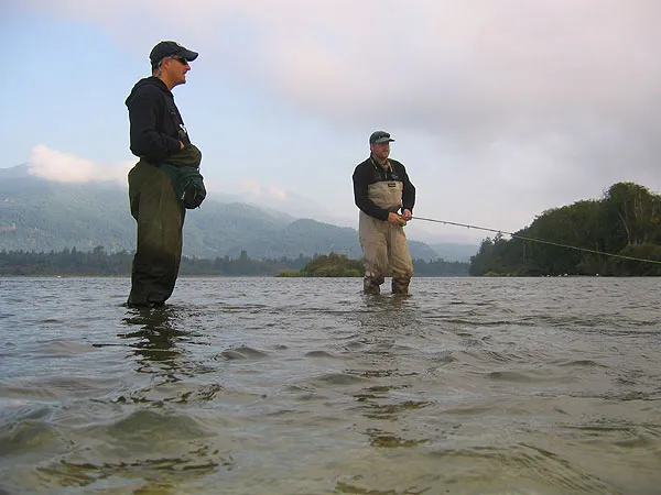 Fishing a riffle in the Harrison for coho. It's our guide Jens Erik Skaaning to the left and Ole Wisler to the right.
