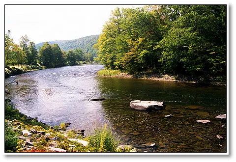 An upstream look at the head of Hendrickson's Pool. Can you say "current seam".