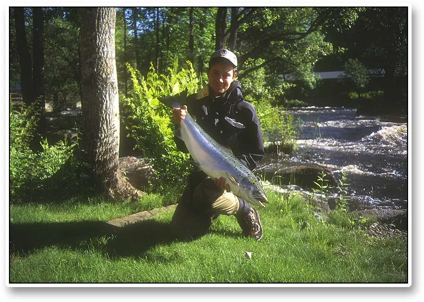 Henrik works in one of the local fly shops, and landed this 10 kilo plus fish while we were in Mörrum. Ken took his picture on one of the small islands in pool 1.