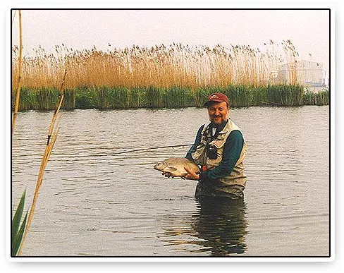 Herman Schibli proudly displaying a bream caught on fly in the Dutch river IJssel