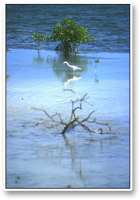 The birdlife in Belize is very rich - even on the small island of Ambergris Caye. The herons are common and come in many sizes and colors. This small heron seemed very aware of its own beauty in the water.