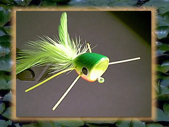 Cupped face, hard foam popper with splayed tail and rubber legs