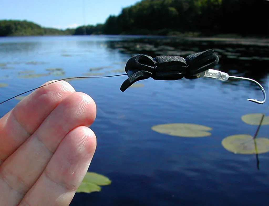 A Plipper over the water it's meant to fish: a shallow pike lake with water lillies.