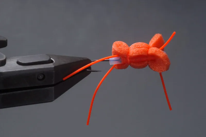 This is how the hook mounts. But you do it by the water after having passed the tippet through the tube and tied it on the hook.