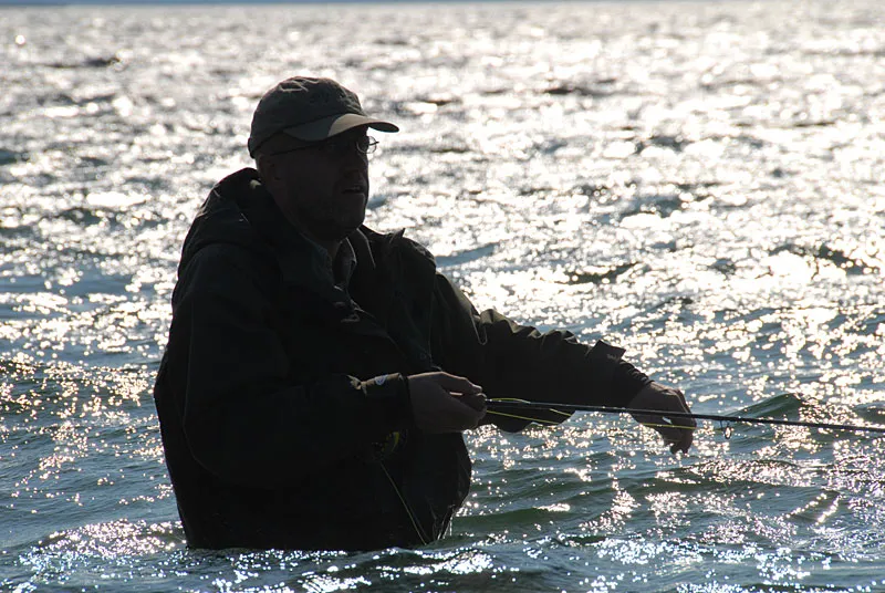 Asger fishing the the harsh light of the September sun